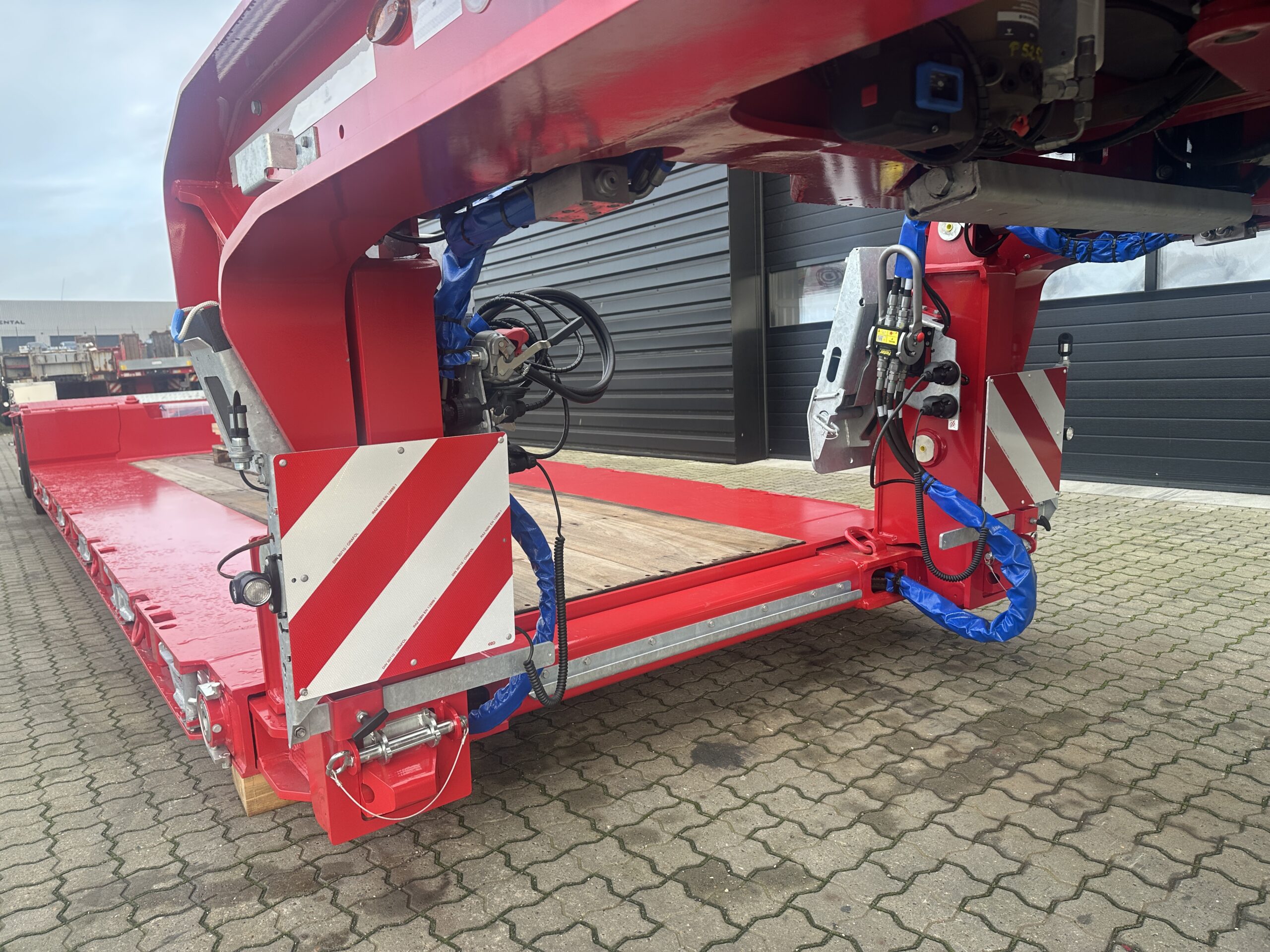 Maxtrailer 2 ejes Cama baja / Extensible 2 x 12.000 kg BPW Suspensión neumática Dirección asistida hidráulica Plataforma: 6.850 mm + 5.500 mm de extensión Acoplamiento múltiple del sistema hidráulico Chasis totalmente metalizado Bordes laterales de aluminio en el Cuello de cisne Bolsillos para estacas Ensanchamientos hasta 3 M Señales de advertencia delanteras y traseras